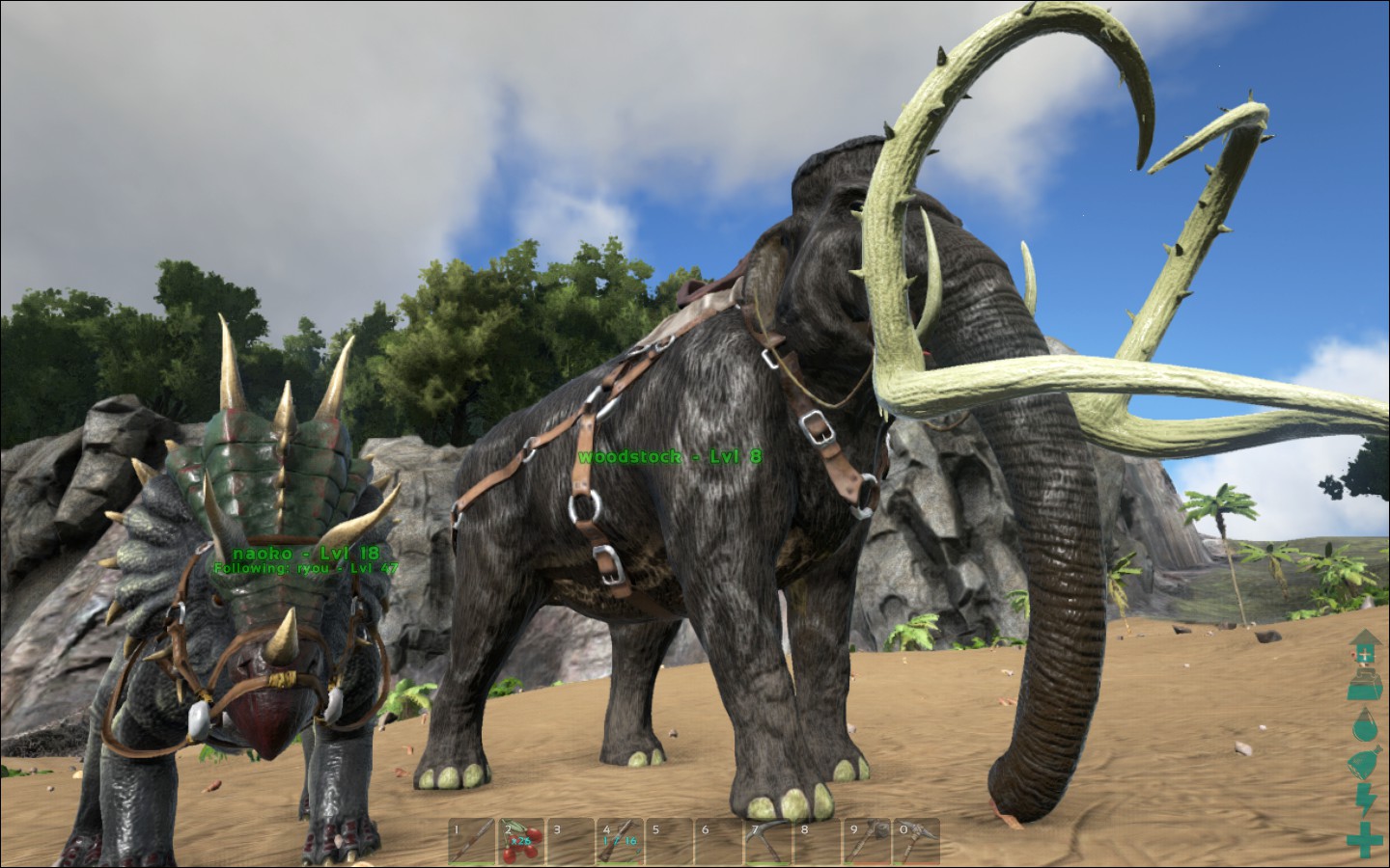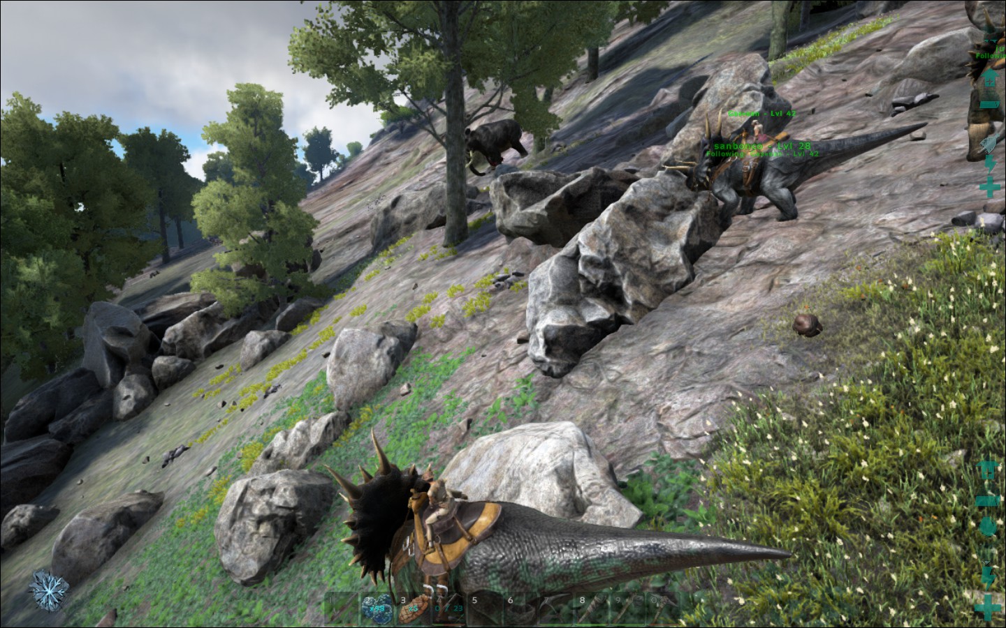 んで、とりまカルノとかを探そうとプテラノドンに乗って視察ー